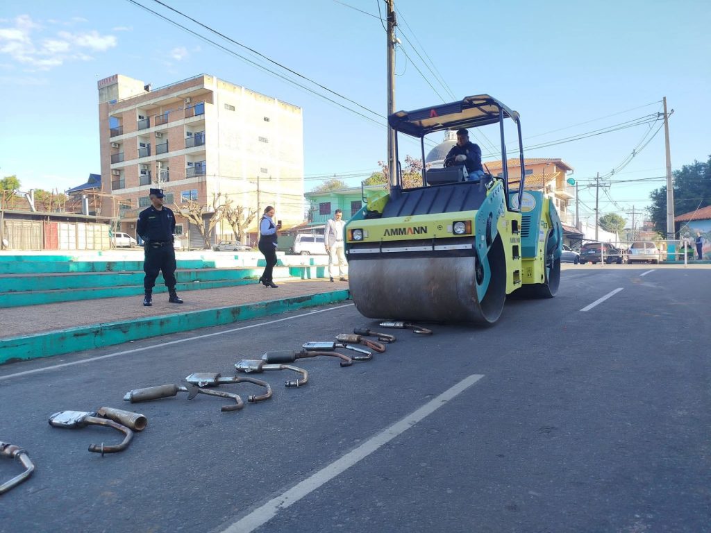 En la fecha, se procedió a la destrucción de caños de escape no reglamentarios, en cumplimiento de la ordenanza municipal que prohíbe su uso por los ruidos molestos que generan y su impacto negativo en el medioambiente.