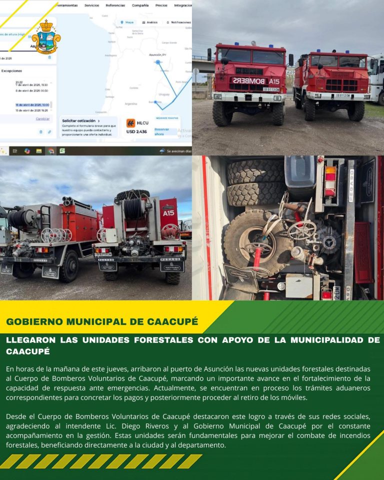 En horas de la mañana de este jueves, arribaron al puerto de Asunción las nuevas unidades forestales destinadas al Cuerpo...