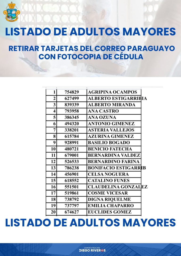 Compartimos el listado de personas que ya pueden retirar sus tarjetas para el cobro de la Pensión de la Tercera...