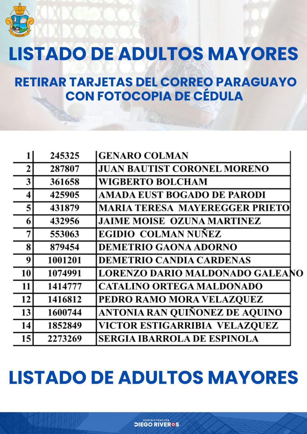 Compartimos el listado de personas que ya pueden retirar sus tarjetas para el cobro de la Pensión de la Tercera Edad.