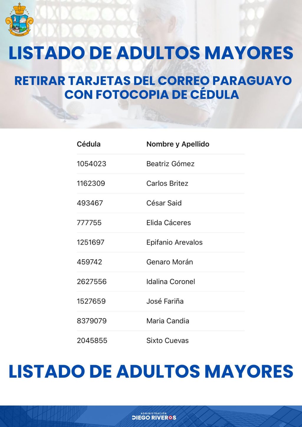 Compartimos el listado de personas que ya pueden retirar sus tarjetas para el cobro de la Pensión de la Tercera Edad.