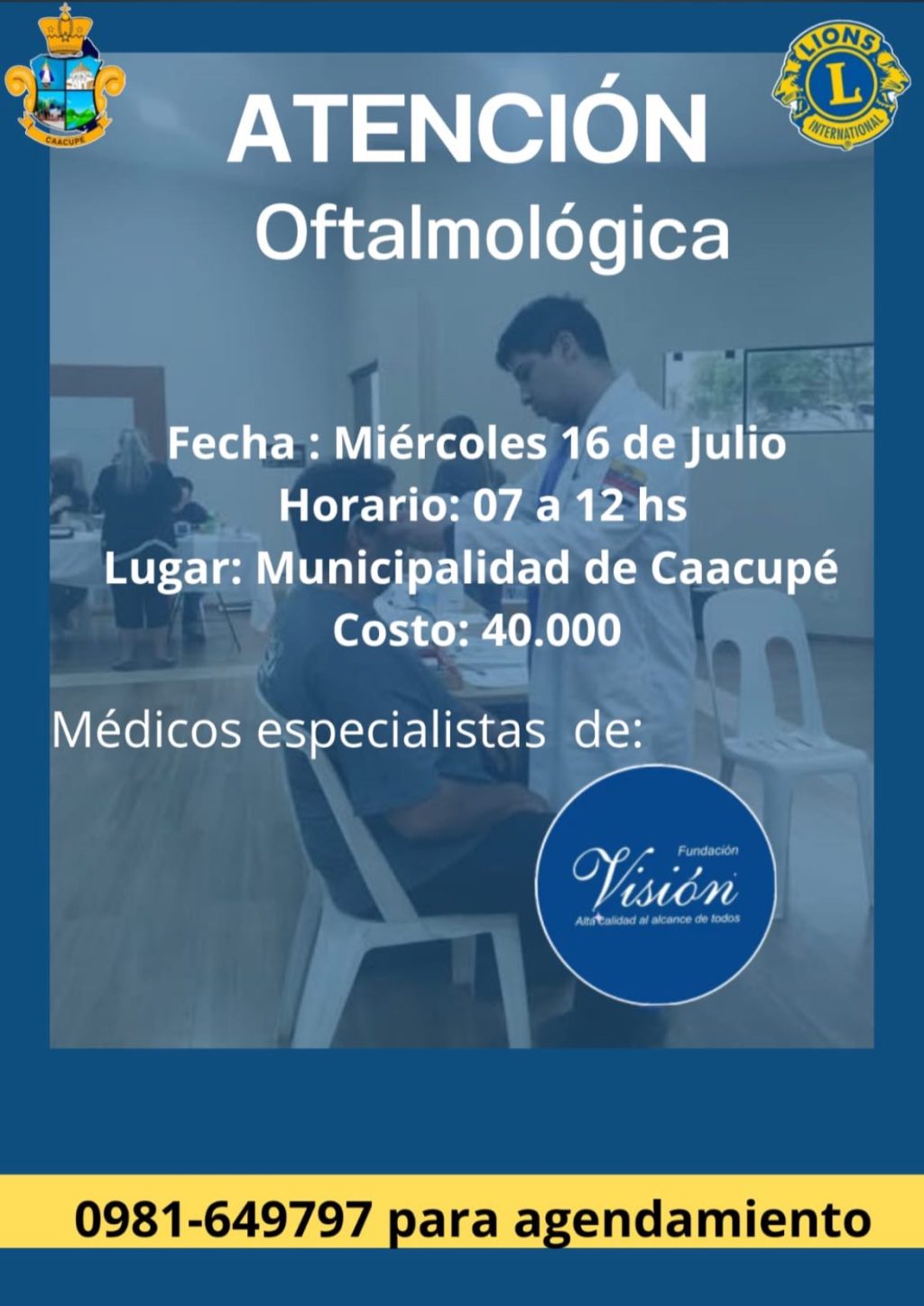 La Municipalidad de Caacupé, en conjunto con el Club de Leones y la Fundación Visión, invita a la ciudadanía a una jornada de atención oftalmológica.
