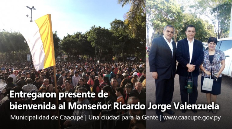El intendente de Caacupé, Lic. Diego Riveros, acompañado del presidente de la Junta Municipal Sr. Emilio Ortega y la...