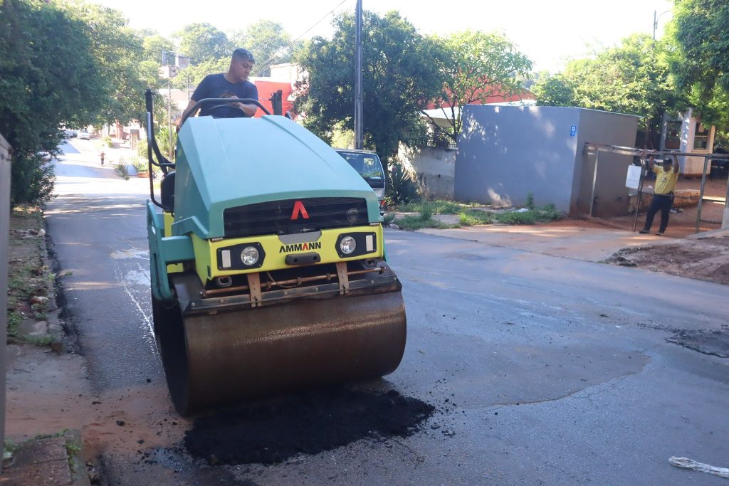 Los compañeros de la Municipalidad realizan trabajos de recomposición asfáltica, dando solución a tramos afectados por perforaciones y mejorando la seguridad vial.