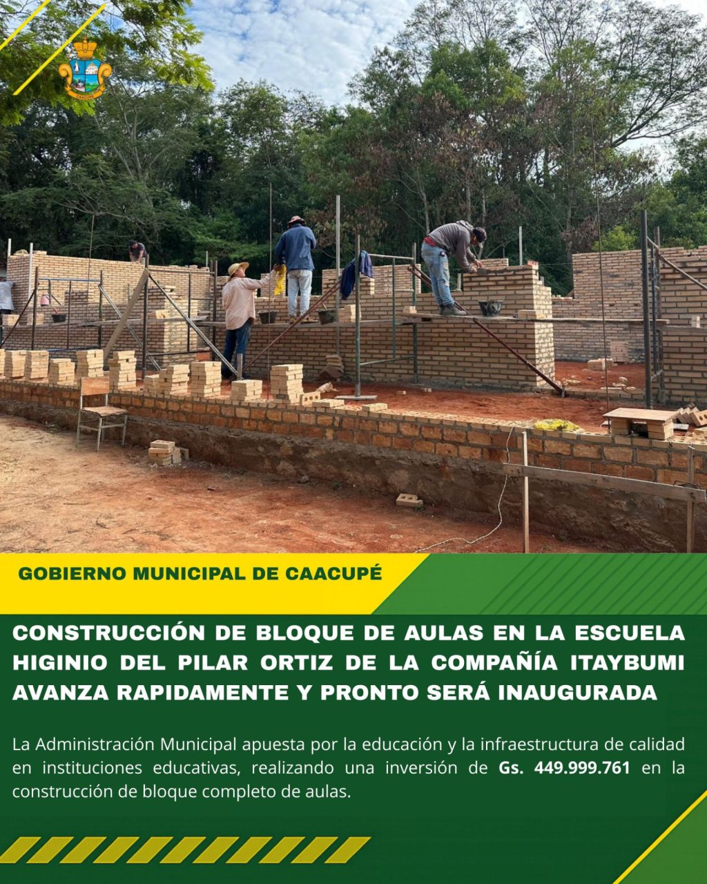 La Administración Municipal apuesta por la educación y la infraestructura de calidad en instituciones educativas, realizando una inversión de Gs. 449.999.761 en la construcción de bloque completo de aulas.