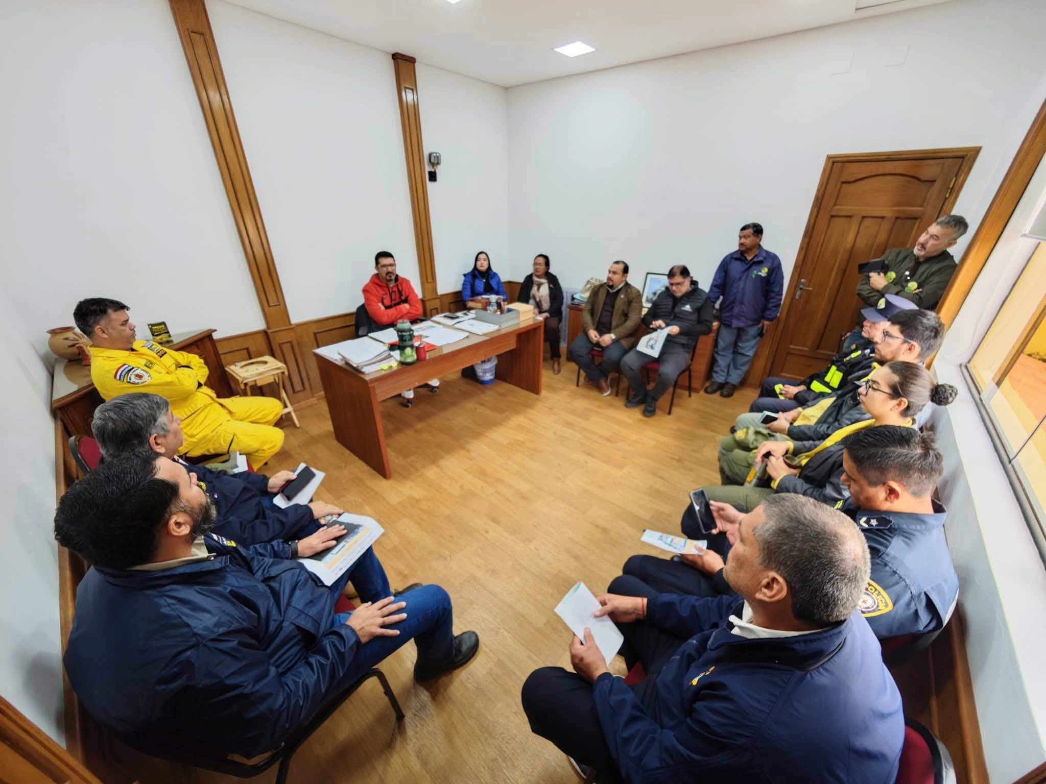 La reunión contó con la presencia de representantes de la Policía Nacional, Hospital Regional, Bomberos Voluntarios (amarillos y azules), así como de la Gobernación de Cordillera y la Junta Departamental.