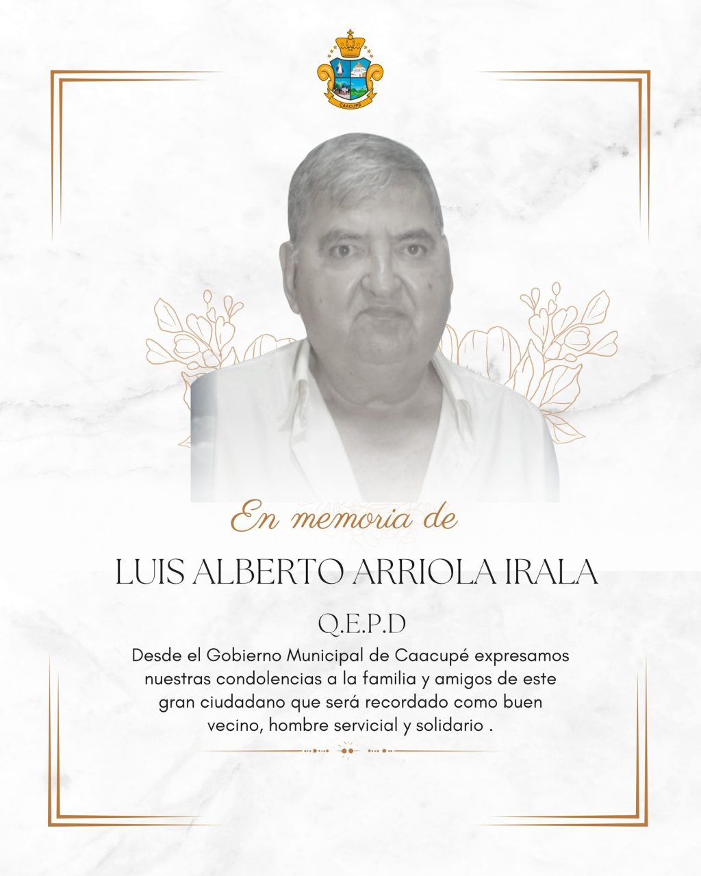 Desde el Gobierno Municipal de Caacupé expresamos nuestras más sentidas condolencias a la familia y amigos de quien en vida fue un gran ciudadano.