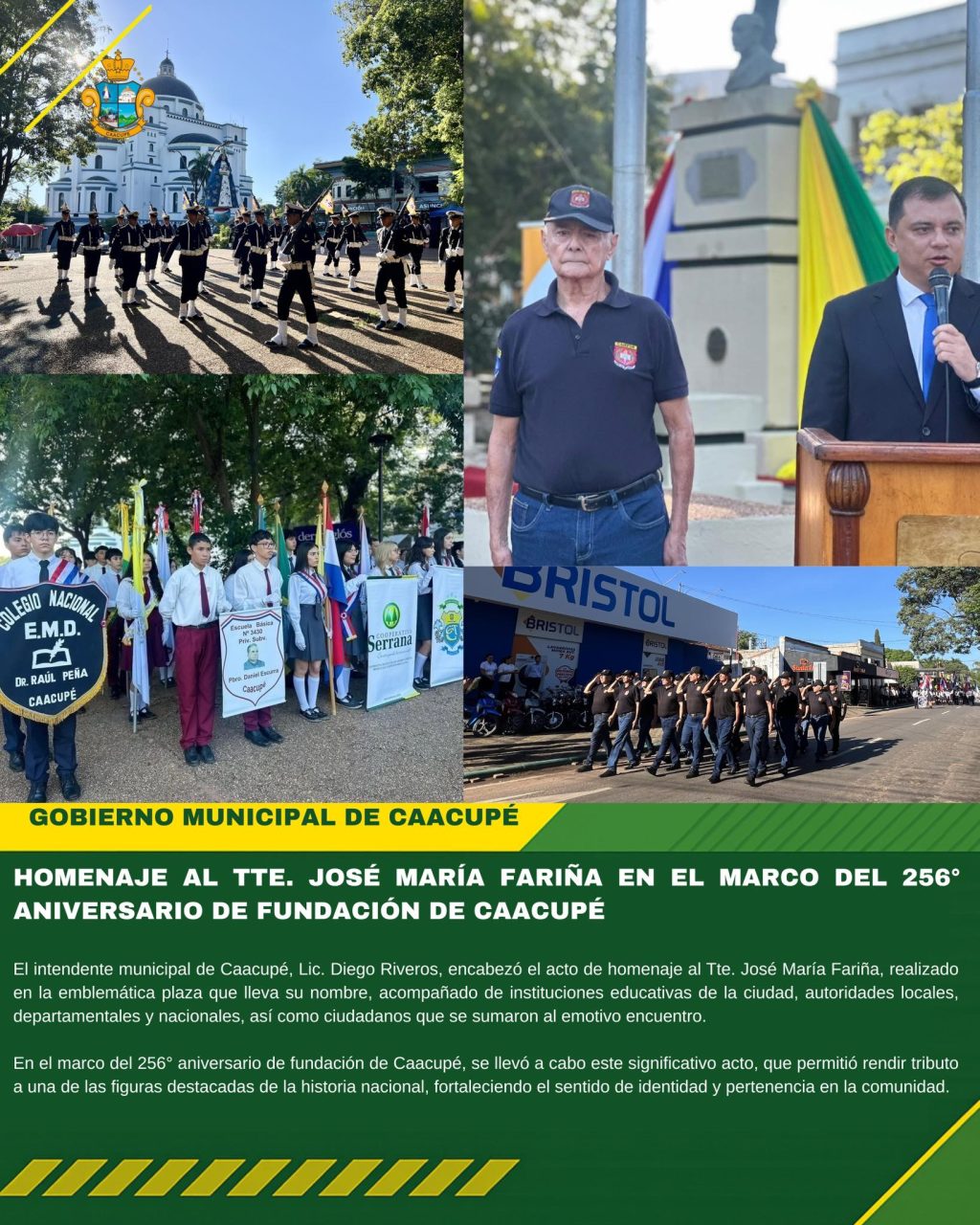 HOMENAJE AL TTE. JOSÉ MARÍA FARIÑA EN EL MARCO DEL 256° ANIVERSARIO DE FUNDACIÓN DE CAACUPÉ