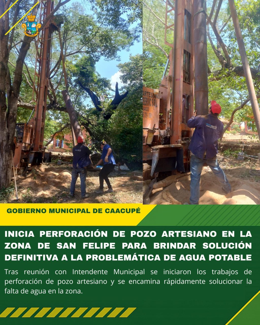 Tras reunión con Intendente Municipal se iniciaron los trabajos de perforación de pozo artesiano y se encamina rápidamente solucionar la falta de agua en la zona.