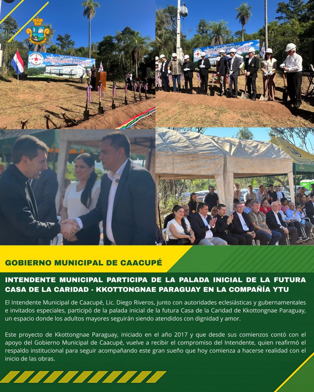 Este proyecto de Kkottongnae Paraguay, iniciado en el año 2017 y que desde sus comienzos contó con el apoyo del Gobierno Municipal de Caacupé, vuelve a recibir el compromiso del Intendente, quien reafirmó el respaldo institucional para seguir acompañando este gran sueño que hoy comienza a hacerse realidad con el inicio de las obras.