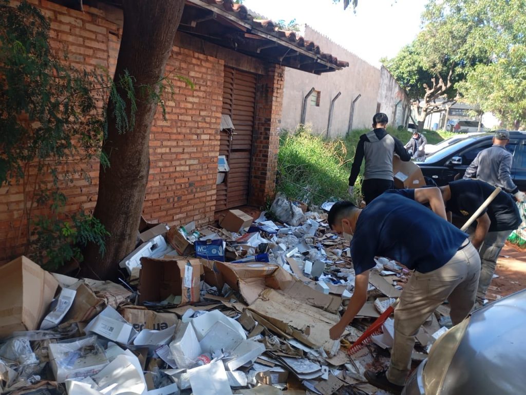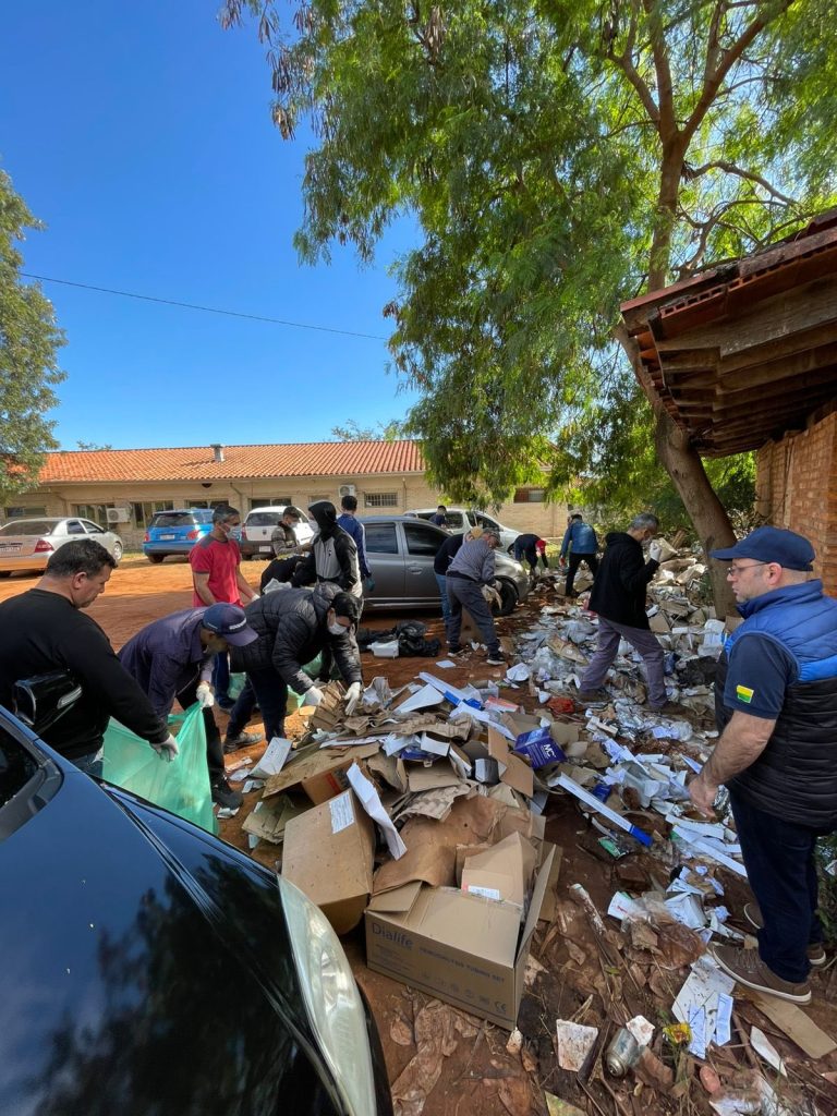 En un valioso servicio voluntario, miembros de la Congregación Misioneros Libres de Reconciliación, junto con la Secretaría de Salud de la Municipalidad de Caacupé, realizaron una ardua limpieza de residuos acumulados en las inmediaciones de la zona de pediatría y el estacionamiento.