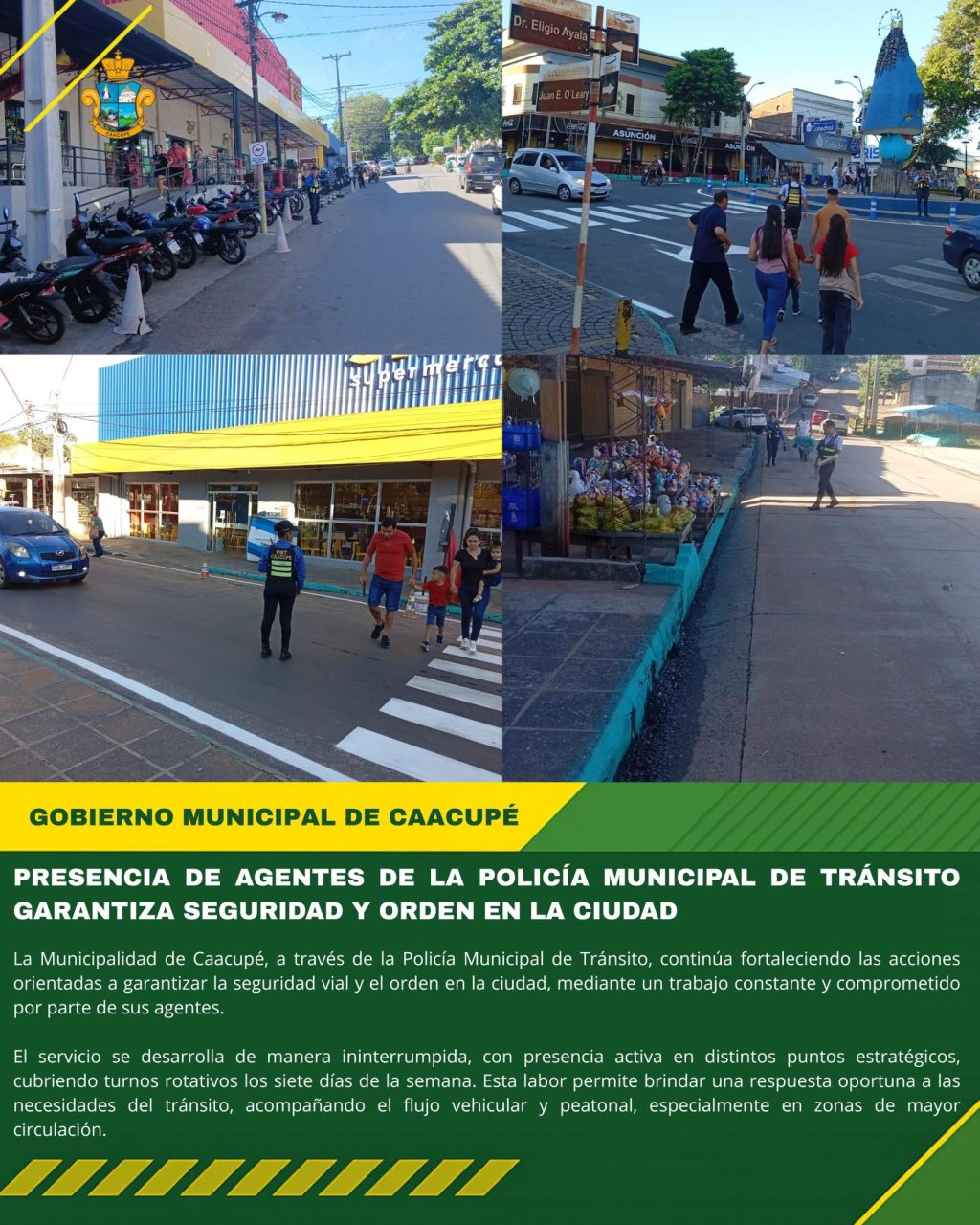 La Municipalidad de Caacupé, a través de la Policía Municipal de Tránsito, continúa fortaleciendo las acciones orientadas a garantizar la seguridad vial y el orden en la ciudad, mediante un trabajo constante y comprometido por parte de sus agentes.
